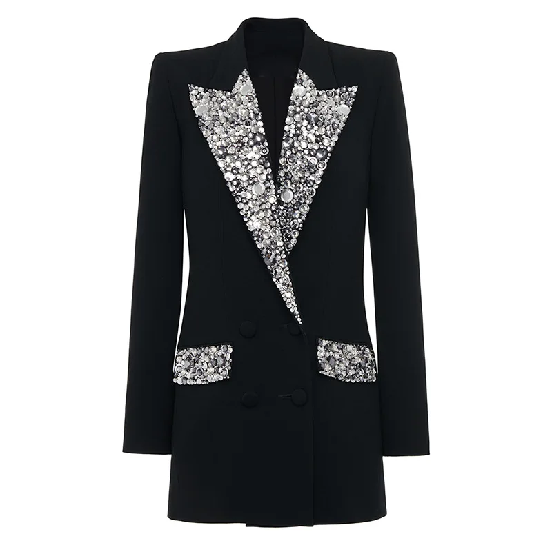 New Arrival Women's Handmade Luxurious Long Solid Notched Collar Blazer Double Breasted Slim Fit Polyester/Cotton Jacket